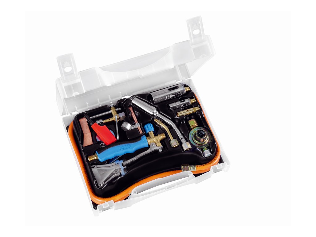 Pájecí kufřík Turbo Lötprofi 2000. Kvalitní 16-dílná souprava pro ruční pájení propan-butanem. Možnost pájení ve všech polohách.